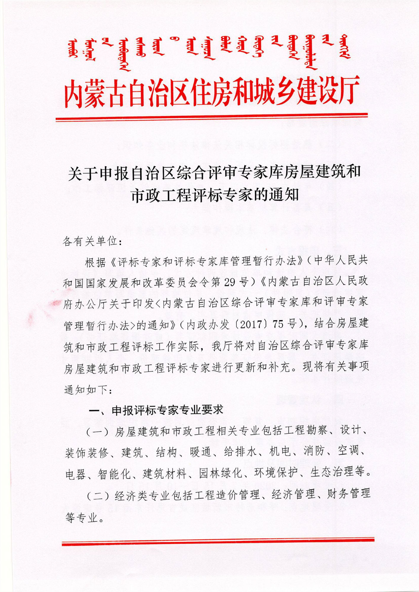 關于申報自治區(qū)綜合評審專家?guī)旖ㄖ褪姓こ淘u標專家的通知