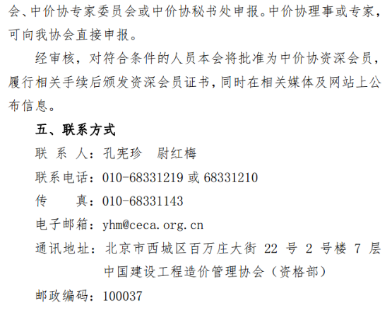 符合資深會員條件并在推薦范圍的人員,應向內(nèi)工建協(xié)申報,由內(nèi)工建協(xié)初審后報送中價協(xié)。